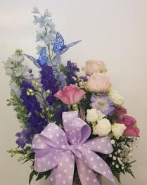 $95.00 (6 roses with a mix of bright colorful flowers with LED lights)
