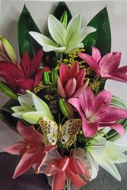 $44.99 carnations, lilies, and daises can be made in different colors.